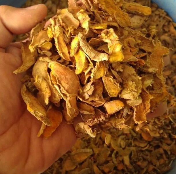 Naturally dried turmeric slices with vibrant color and quality.